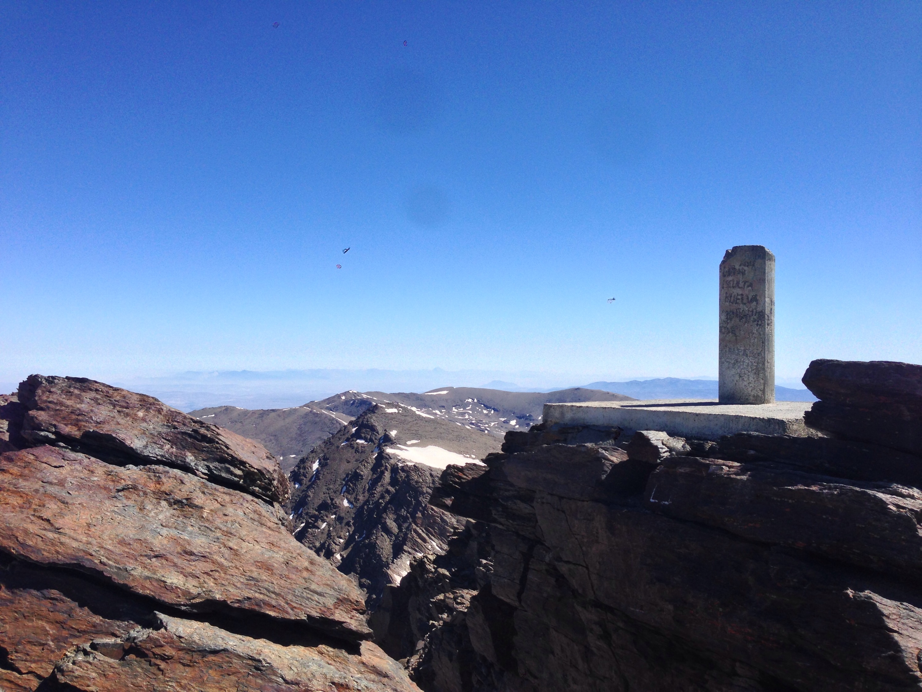 Freitag: um halb neun zum Frühstück, sehr mittelmäßig und der Kaffee sowie Tee scheisse. Um halb zehn los Richtung Gipfel. Aufstieg über den Rio Mulhacén, um halb zwölf waren wir oben. Ausblick: Mui precioso! Die Mühe hat sich gelohnt:
